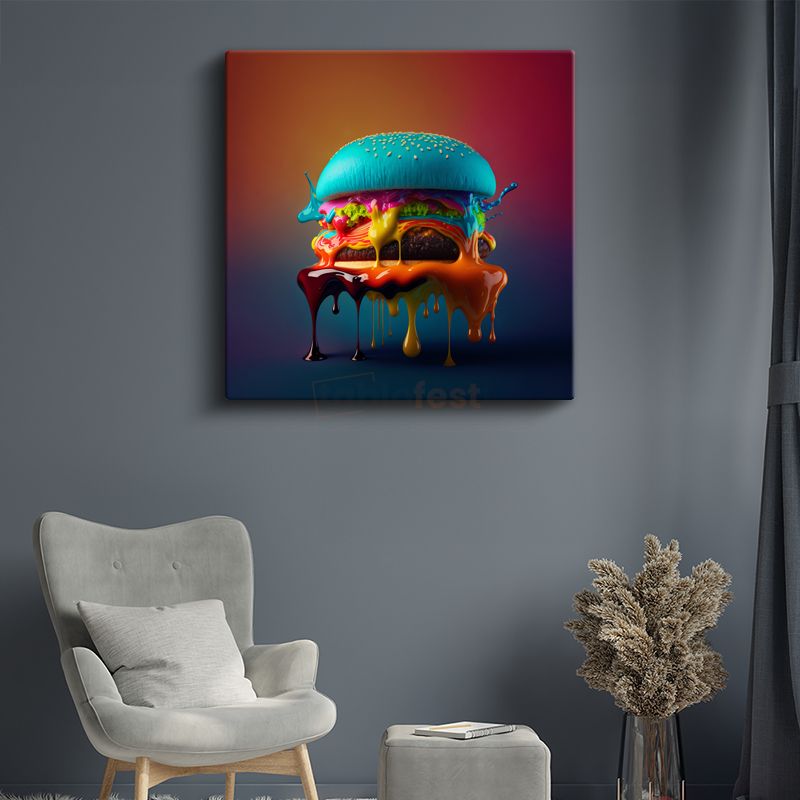 Eriyen Lezzet - Renklere Dönüşen Hamburger Kanvas Tablo