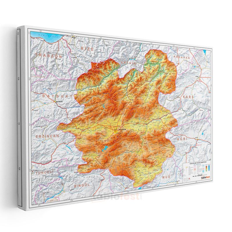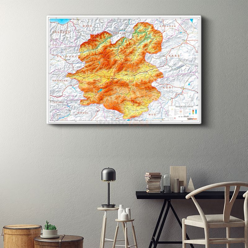 Erzurum - Fiziki Haritası Kanvas Tablo