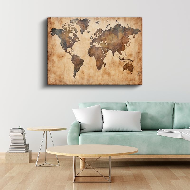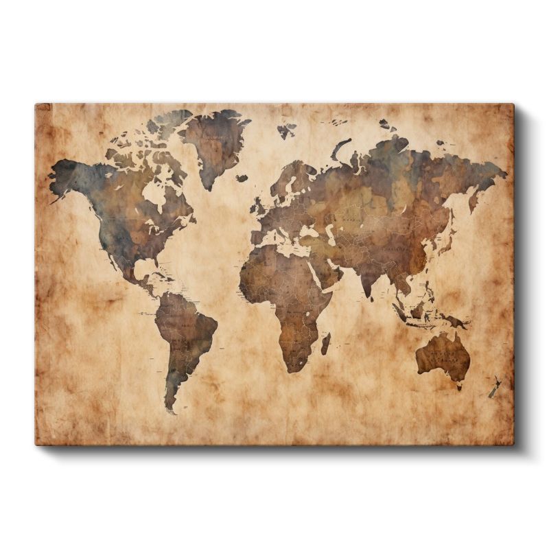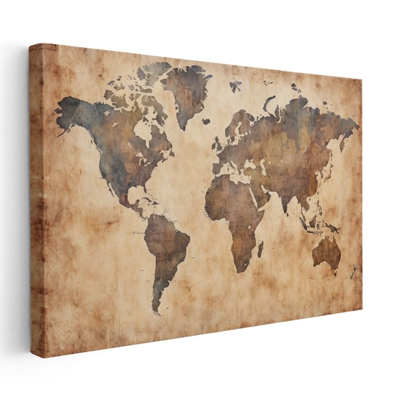 Eski Dünya Haritası - Bronz ve Altın Efektli Kanvas Tablo