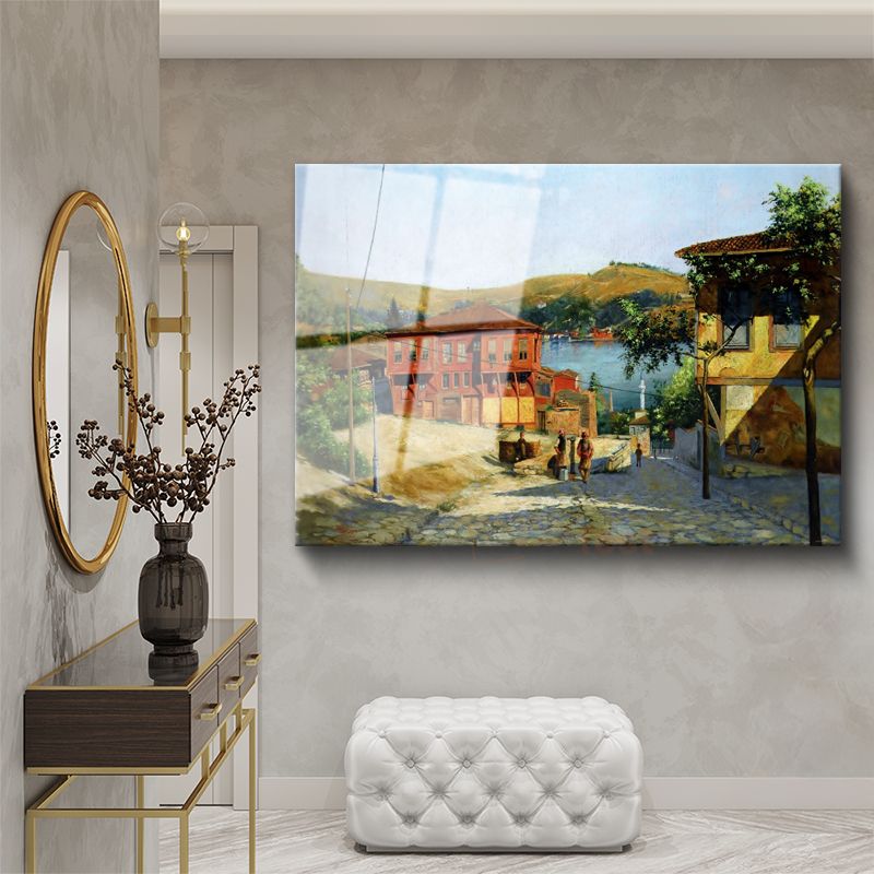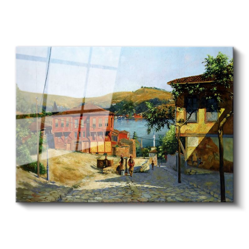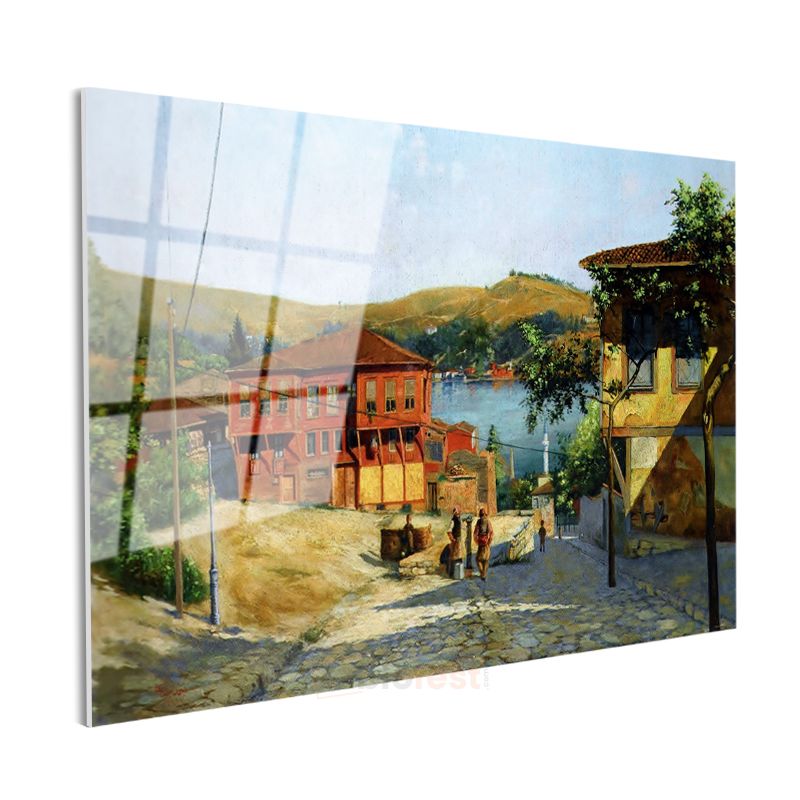 Eski İstanbul - Boğaz Kıyısında Osmanlı Evleri Cam Tablo