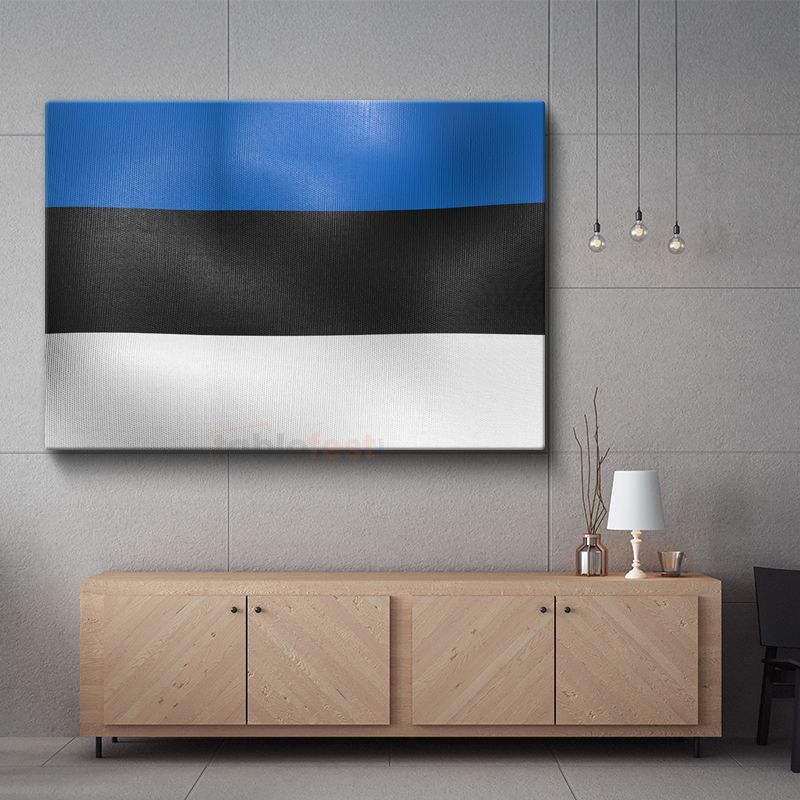 Estonya Bayrağı - Dalgalı Görünüm Kanvas Tablo