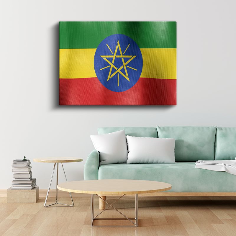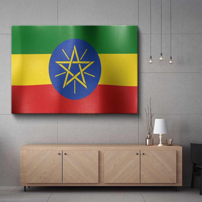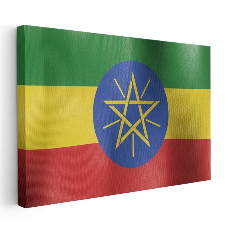 Etiyopya Bayrağı - Dalgalı Görünüm Kanvas Tablo