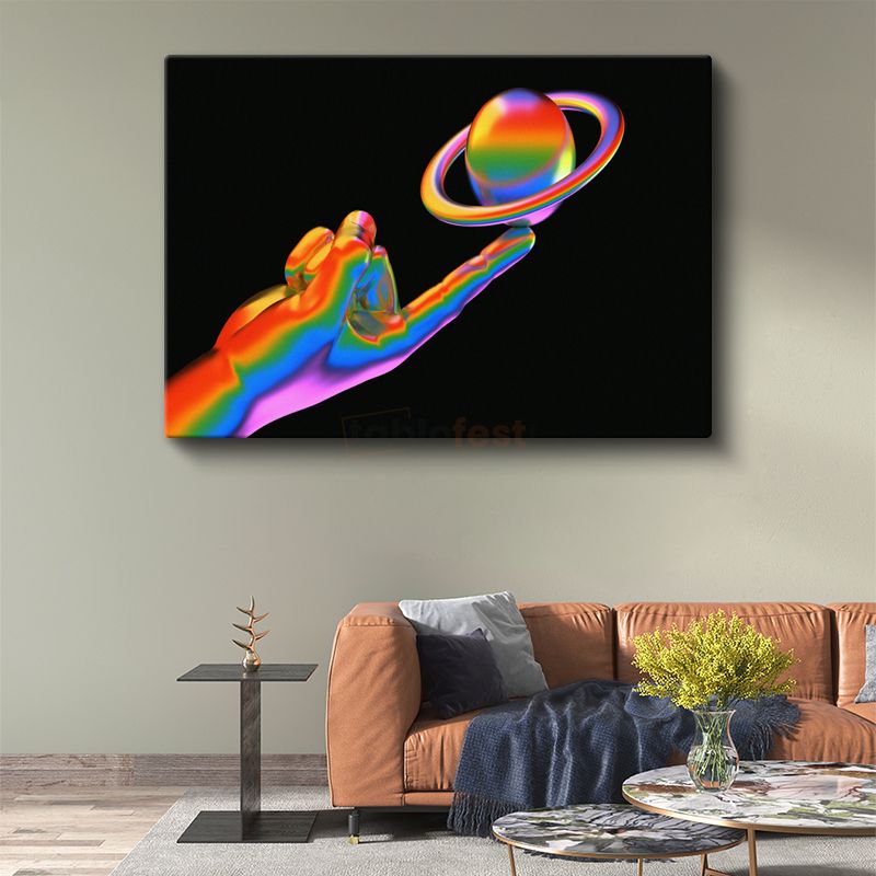 Evrenin Dokunuşu - Gökkuşağı Gezegen Kanvas Tablo