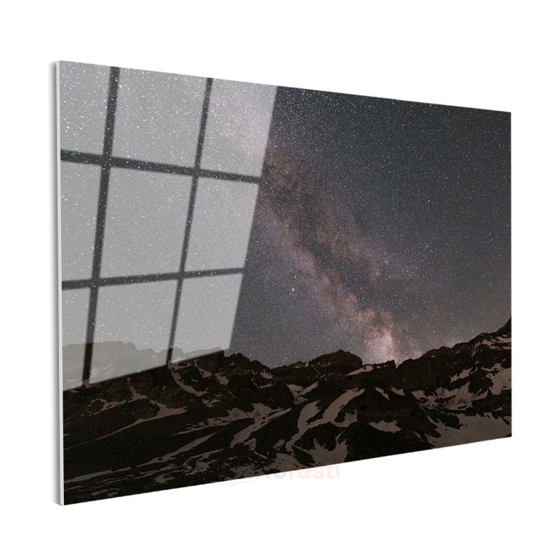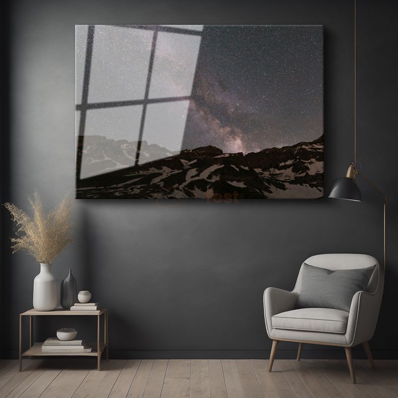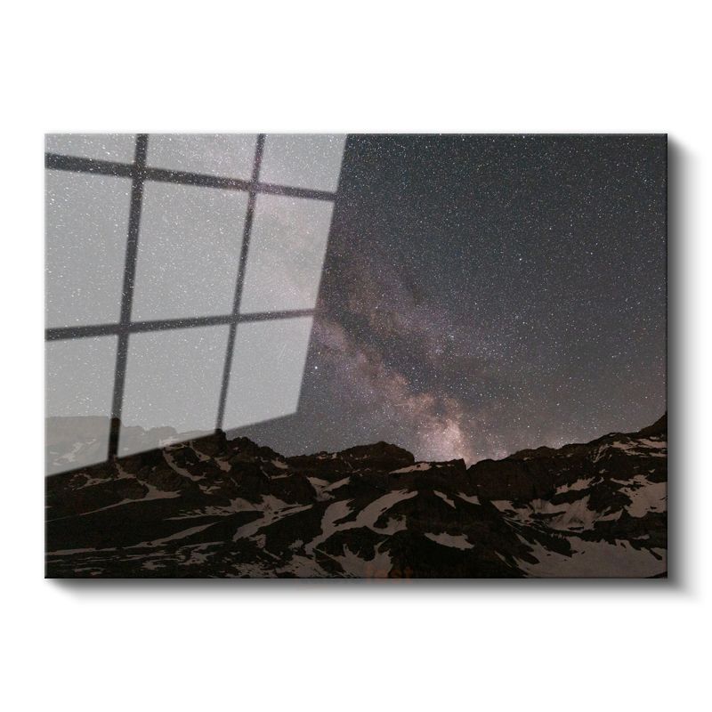 Evrenin Işıltısı - Dağ Zirvelerinde Yansıyan Samanyolu Cam Tablo