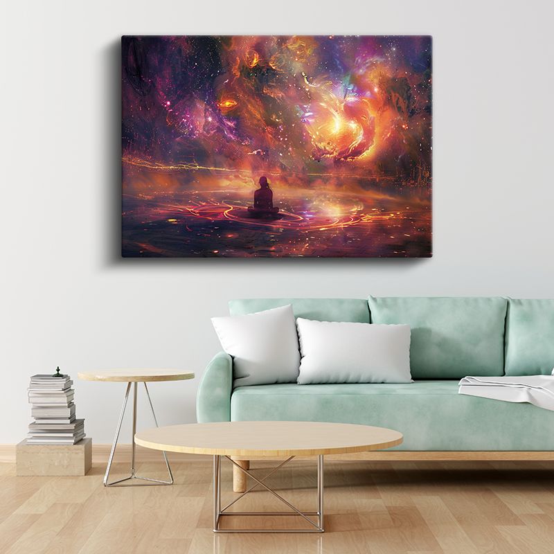 Evrenin Meditasyonu - Kozmik Enerji Havuzunda Aydınlanma Kanvas Tablo