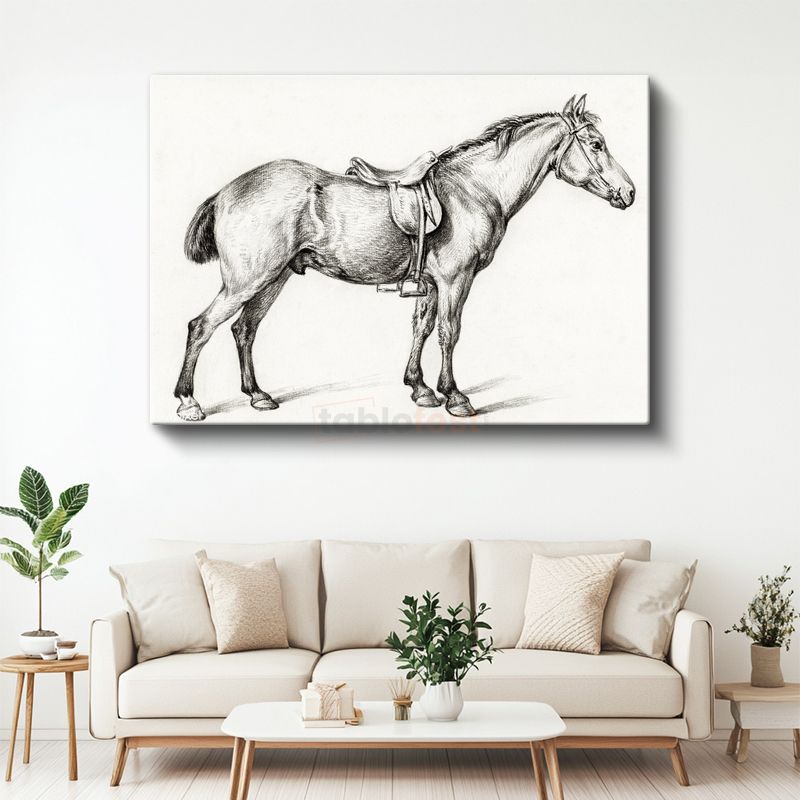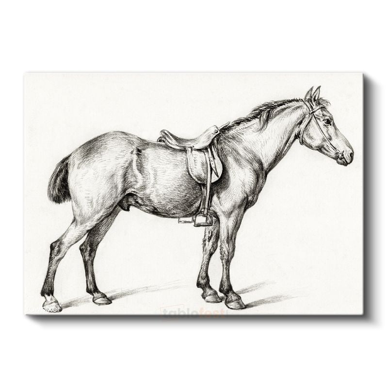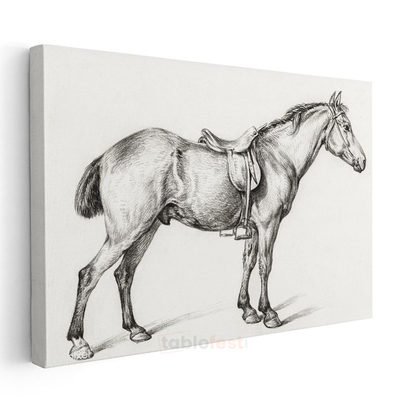 Eyerli At - Binicilik Ekipmanıyla Hazır Duruş Kanvas Tablo