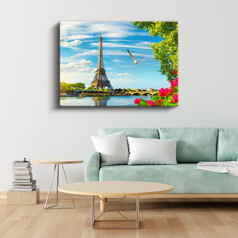 Eyfel Kulesi - Seine Nehri Kıyısında Bahar Kanvas Tablo