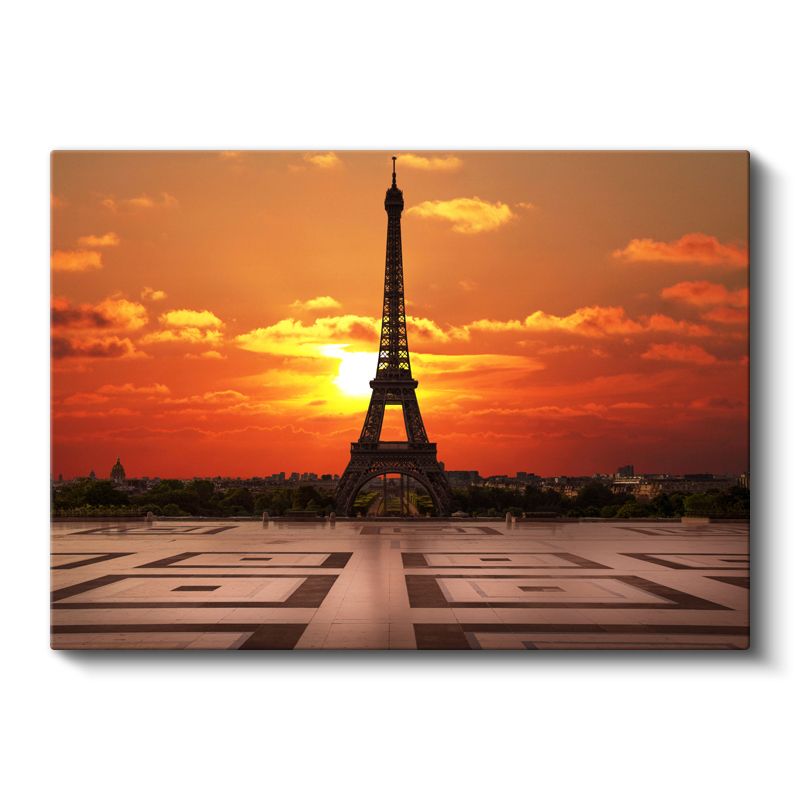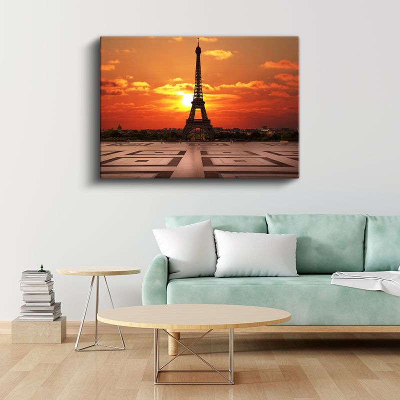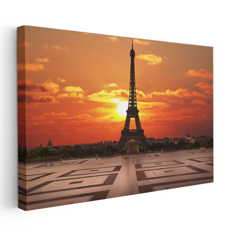 Eyfel Kulesi - Turuncu Gün Batımı Silüeti Kanvas Tablo