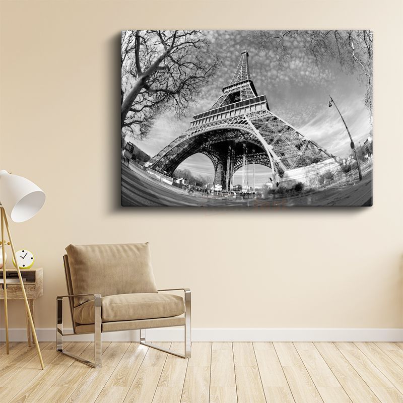 Eyfel Perspektifi - Siyah Beyaz Mimari Kanvas Tablo