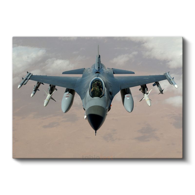F-16 Savaş Uçağı - Havada Görev Başında Askeri Jet Kanvas Tablo