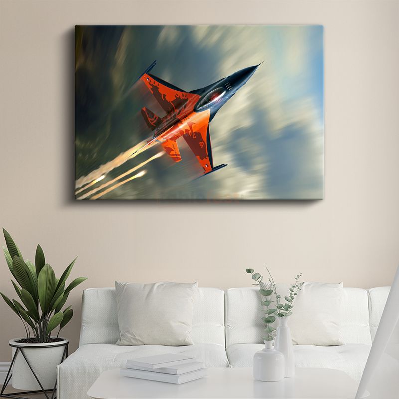 F-16 Savaş Uçağı - Turuncu Özel Tasarım Hava Aracı Kanvas Tablo