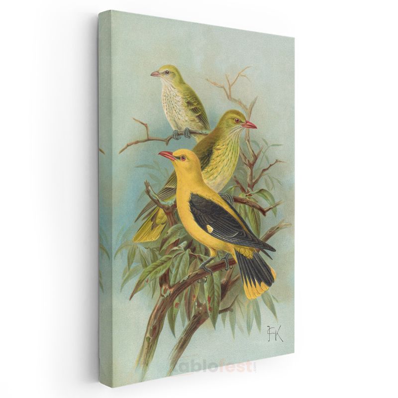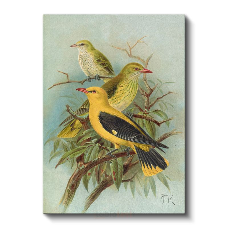 F.K. - Sarı Kuşlar Üçlüsü Kanvas Tablo
