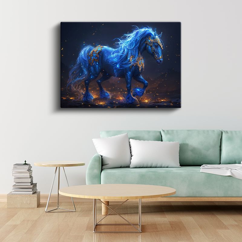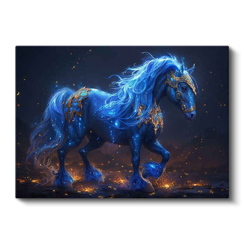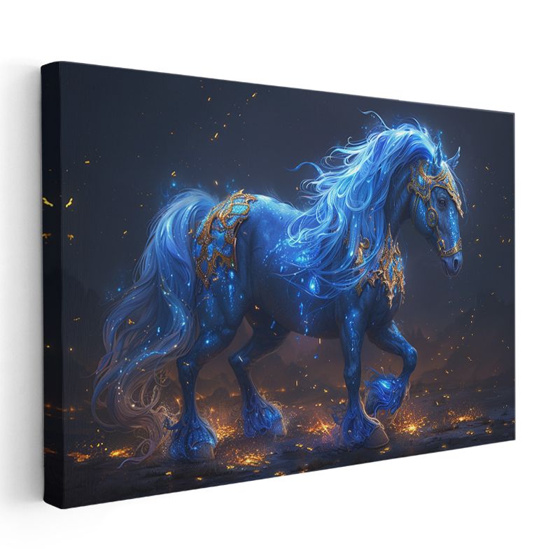Fantastik Mavi At - Altın Detaylı Büyülü Görünüm Kanvas Tablo