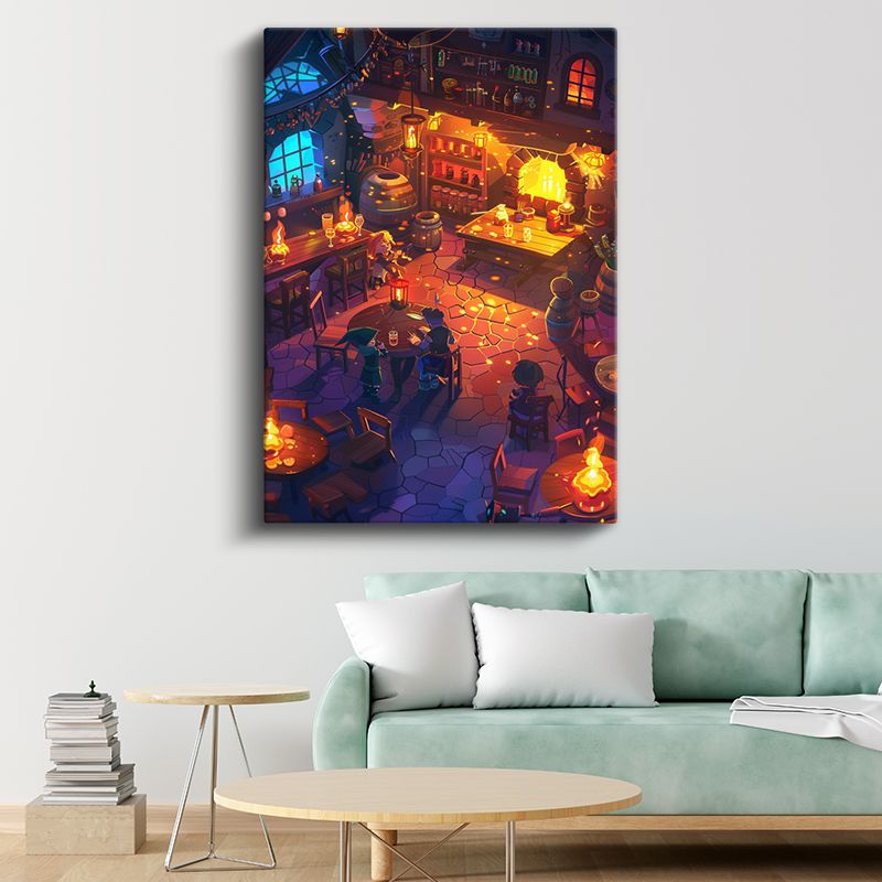 Fantastik Meyhane - Sıcak Işıklar Altında Anime Kanvas Tablo
