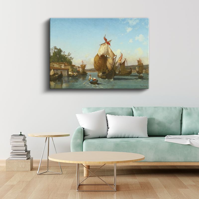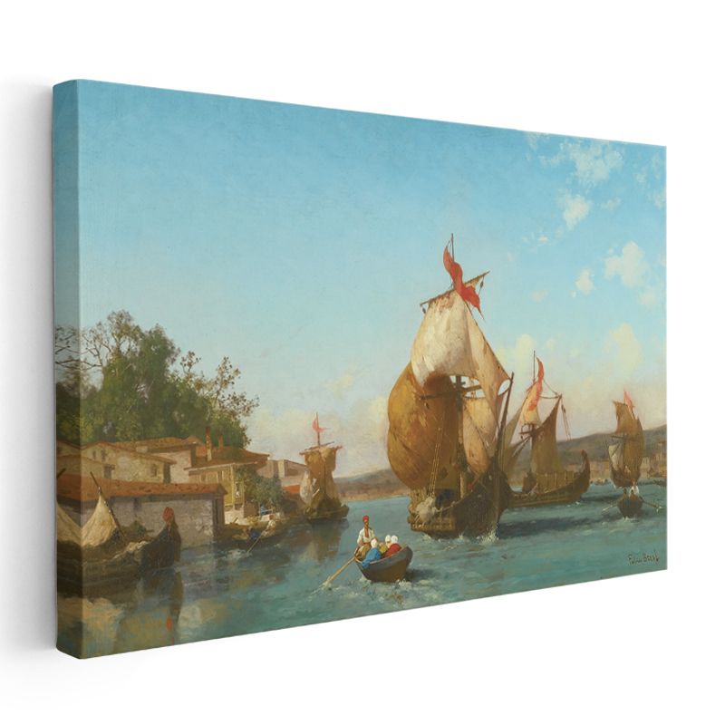 Fausto Zonaro - Boğaz'da Yelkenliler Kanvas Tablo
