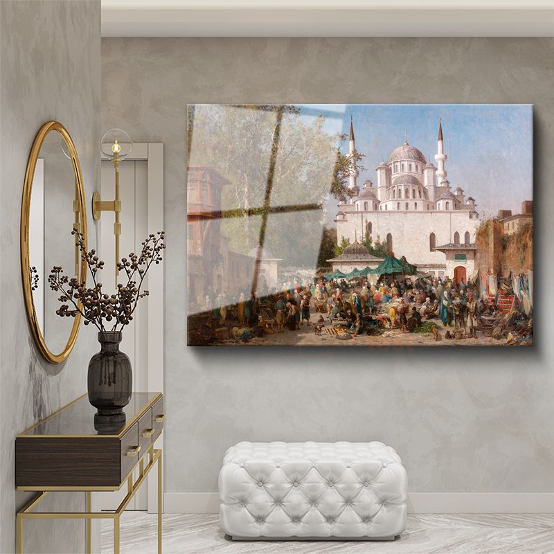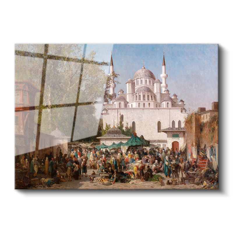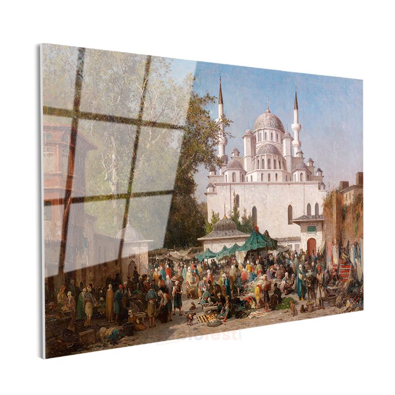 Fausto Zonaro - Cami Önünde Pazar Yeri Cam Tablo