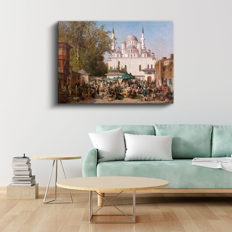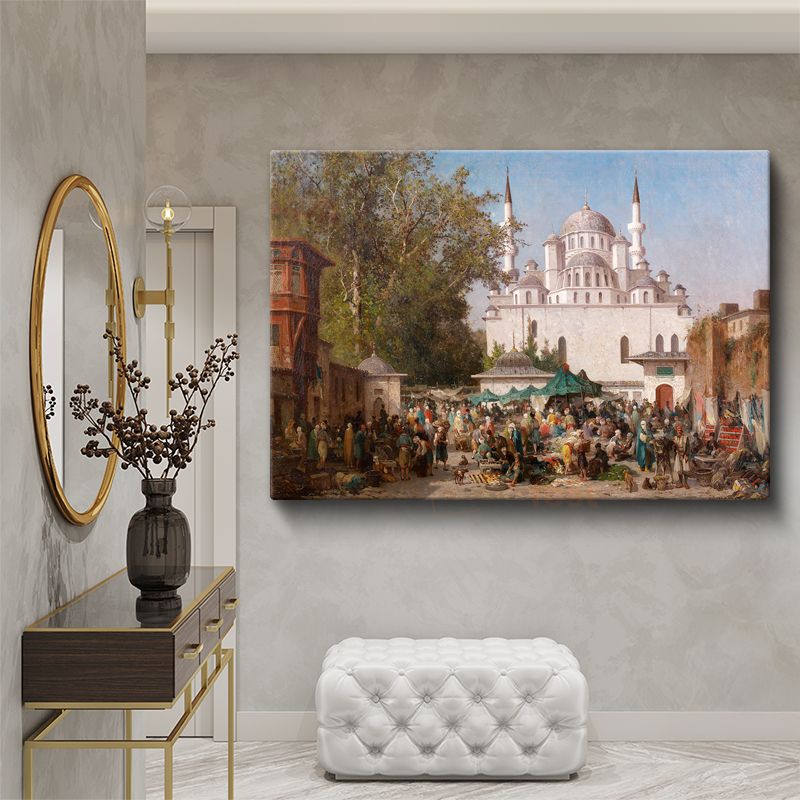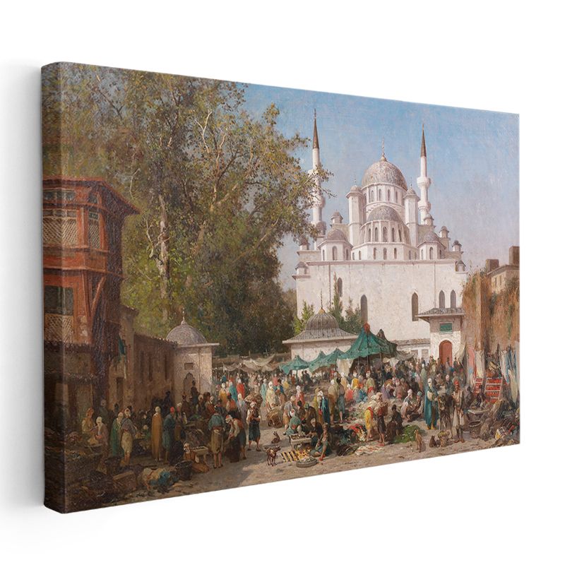 Fausto Zonaro - Cami Önünde Pazar Yeri Kanvas Tablo