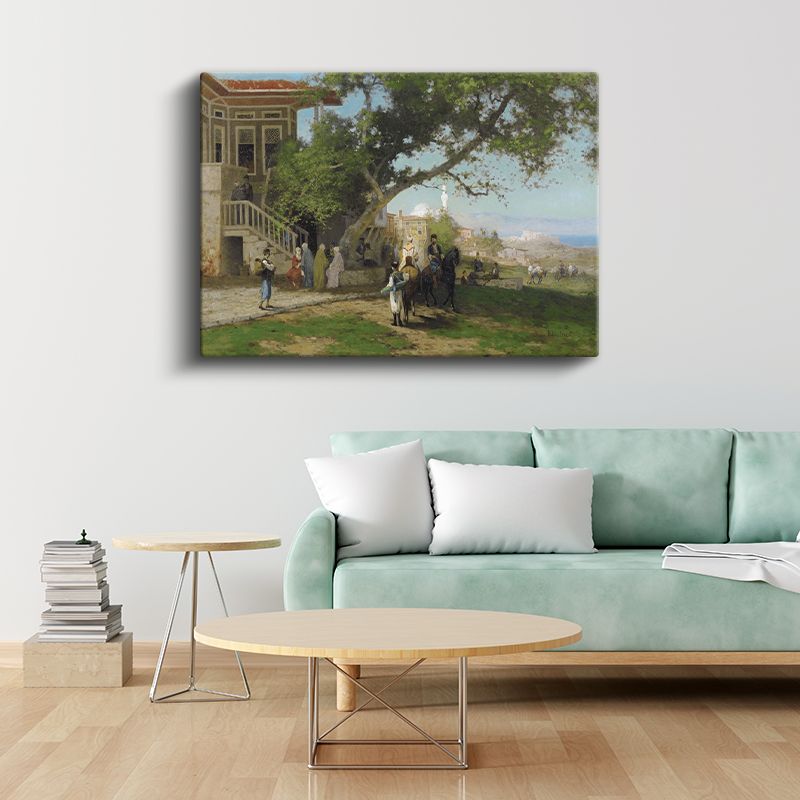Fausto Zonaro - Konak Önünde Atlılar Kanvas Tablo