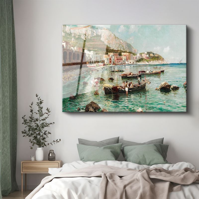 Federico Nerly - Capri Kıyıları Cam Tablo