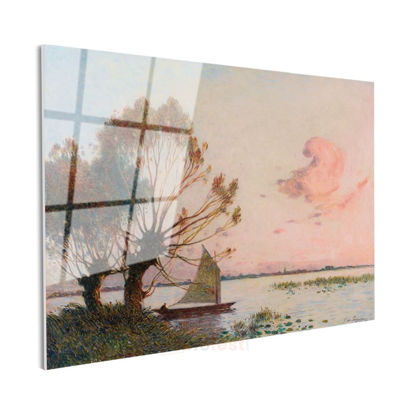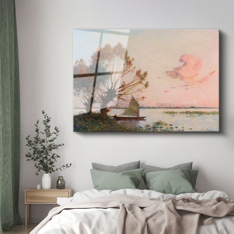 Ferdinand du Puigaudeau - Gün Batımında Göl Manzarası Cam Tablo