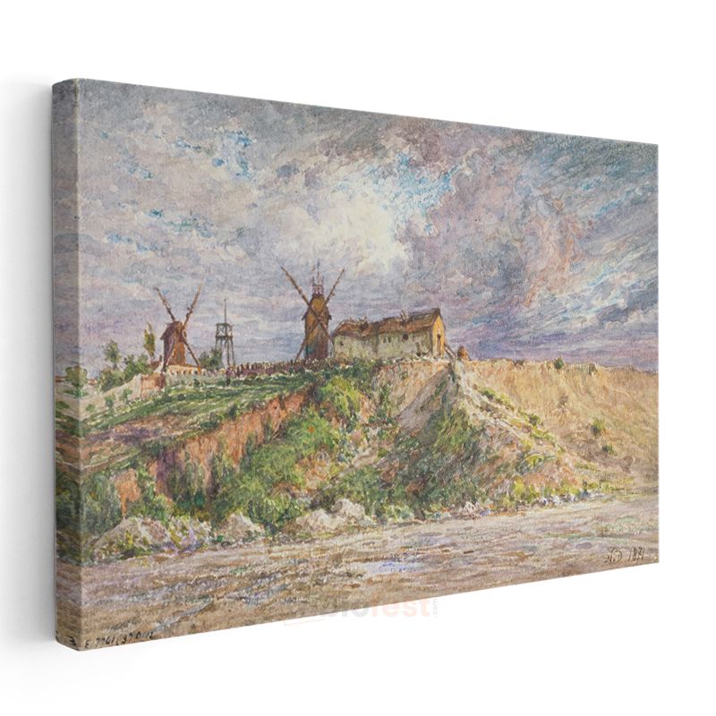 Ferdinand Perrot - Tepedeki Değirmenler Kanvas Tablo