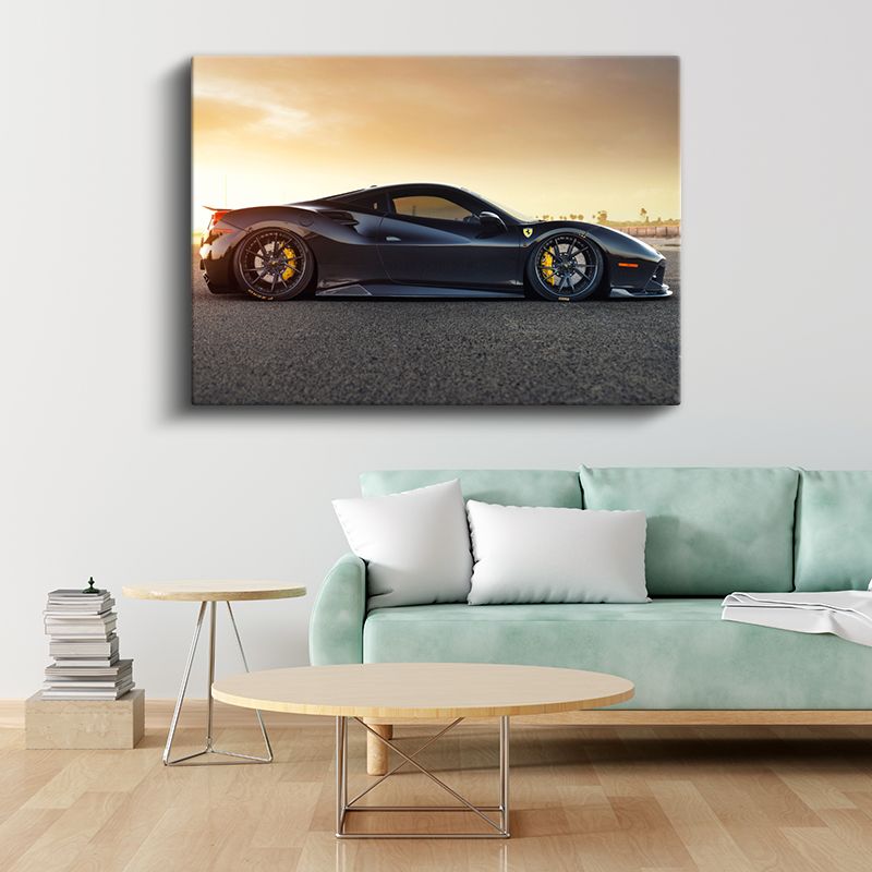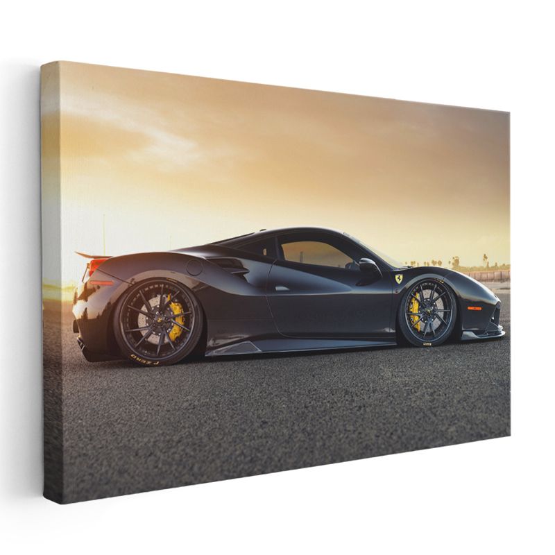 Ferrari 488 GTB - Gece Manzaralı Süper Otomobil Kanvas Tablo