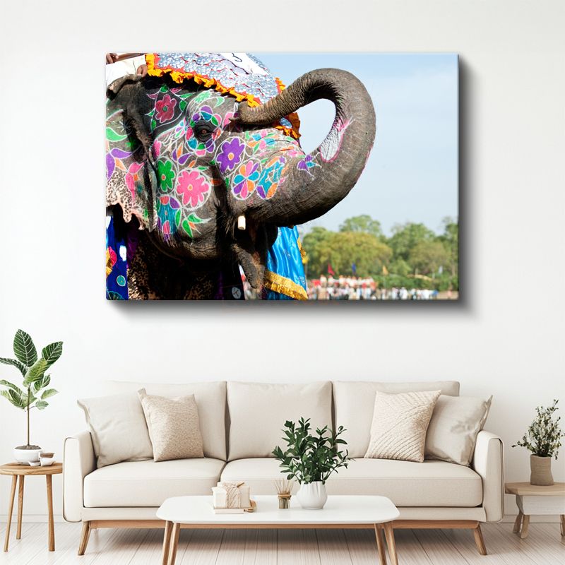 Festival Fili - Renkli Desenli Hint Geleneği Kanvas Tablo