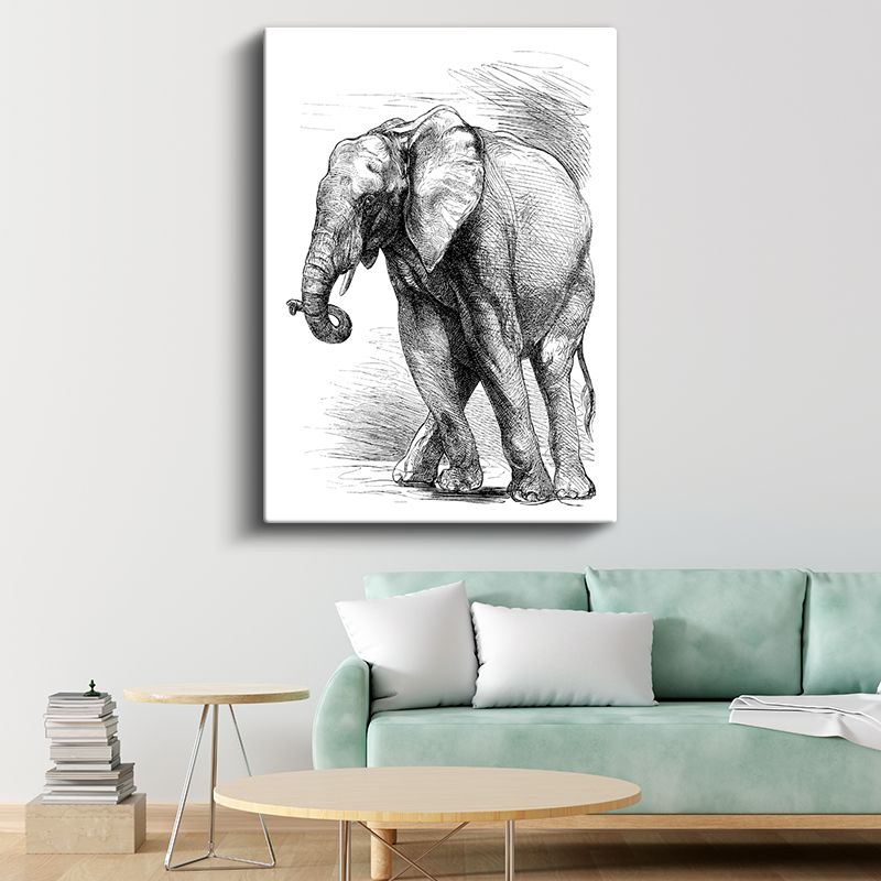 Fil Çizimi - Klasik Eskiz Kanvas Tablo