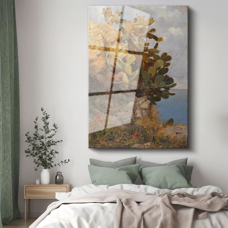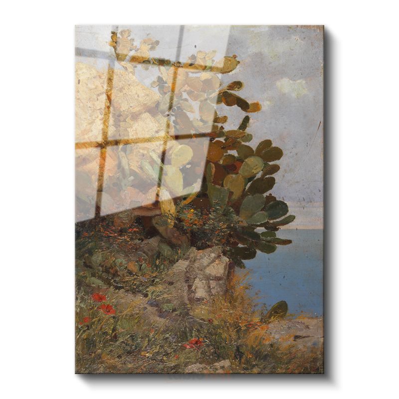 Filippo Palizzi - Akdeniz Kaktüsleri Cam Tablo