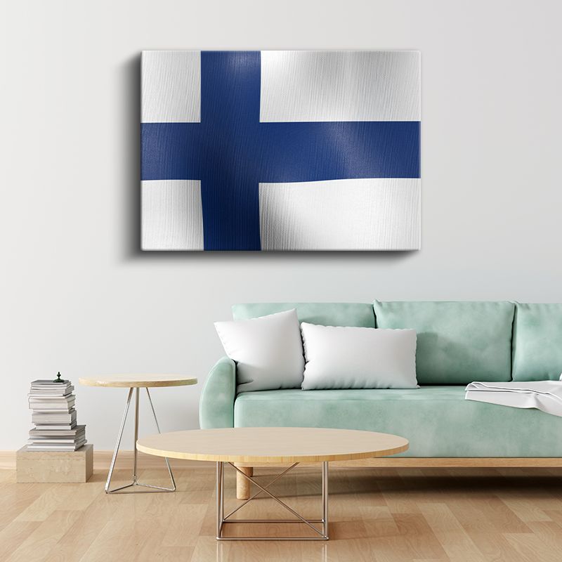 Finlandiya Bayrağı - Dalgalı Görünüm Kanvas Tablo