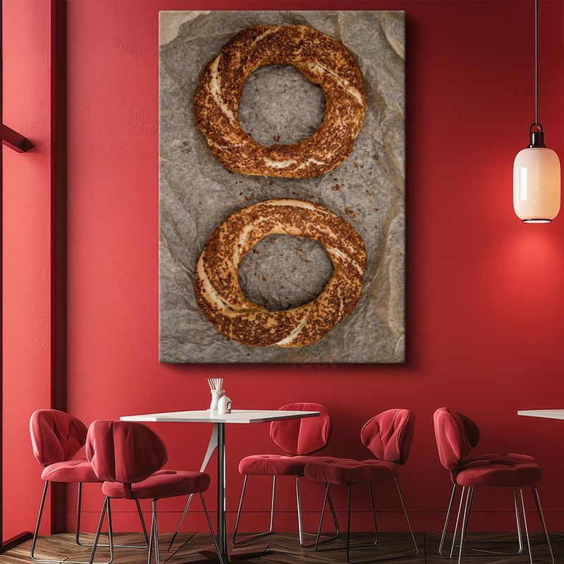 Fırından Taze - El Yapımı Simit Kanvas Tablo