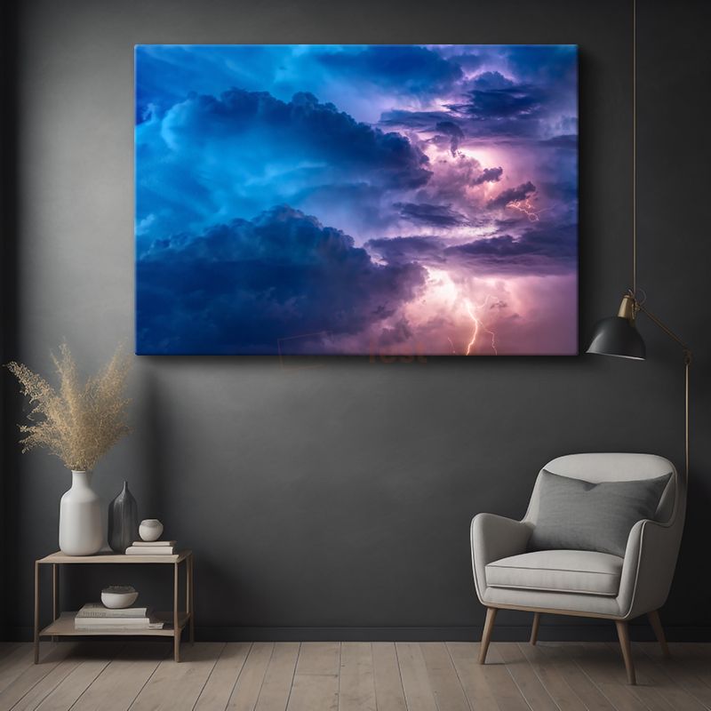 Fırtına - Gökyüzünde Dans Eden Şimşekler Kanvas Tablo