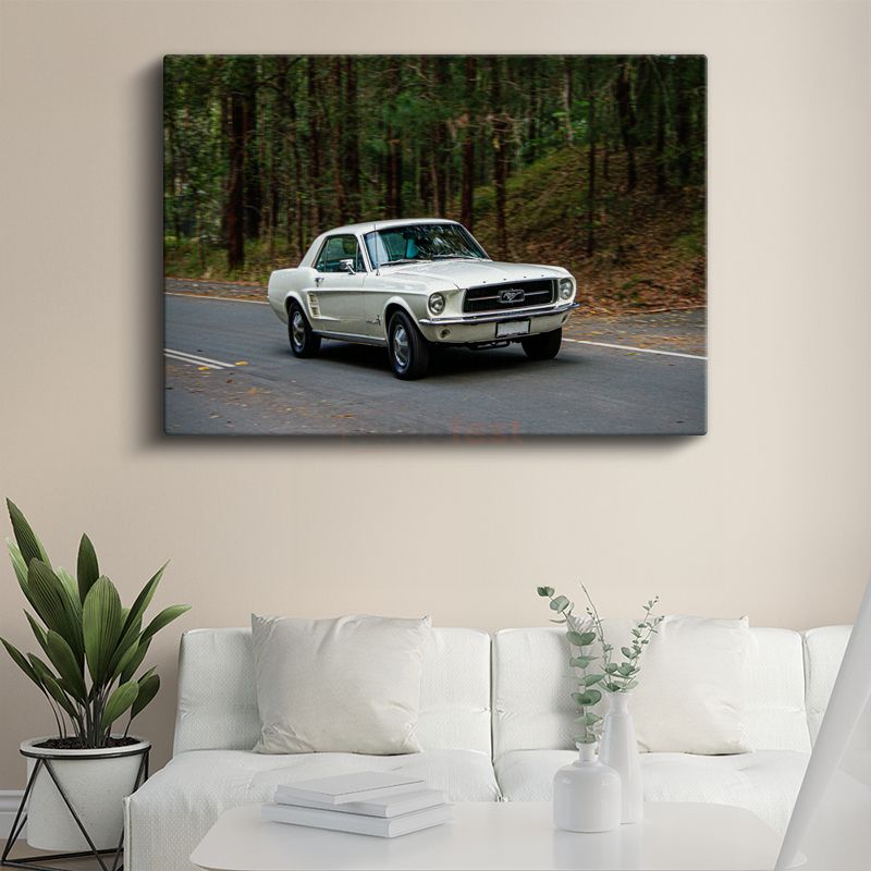 Ford Mustang 1967 - Orman Yolunda Amerikan Klasiği Kanvas Tablo