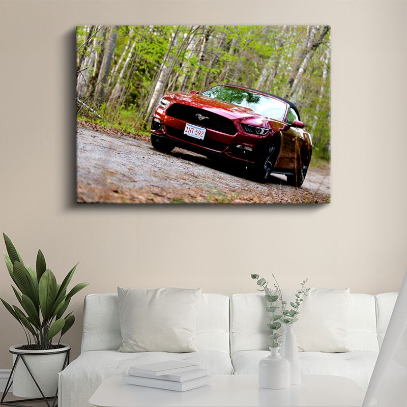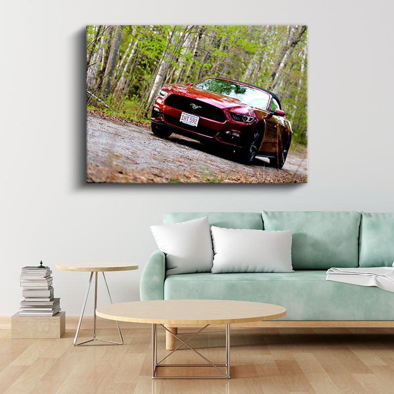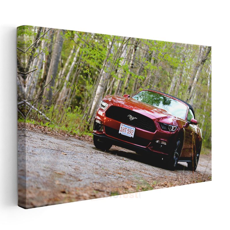 Ford Mustang GT - Bahar Ormanında Kırmızı Spor Araba Kanvas Tablo