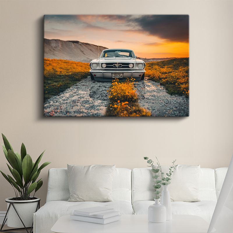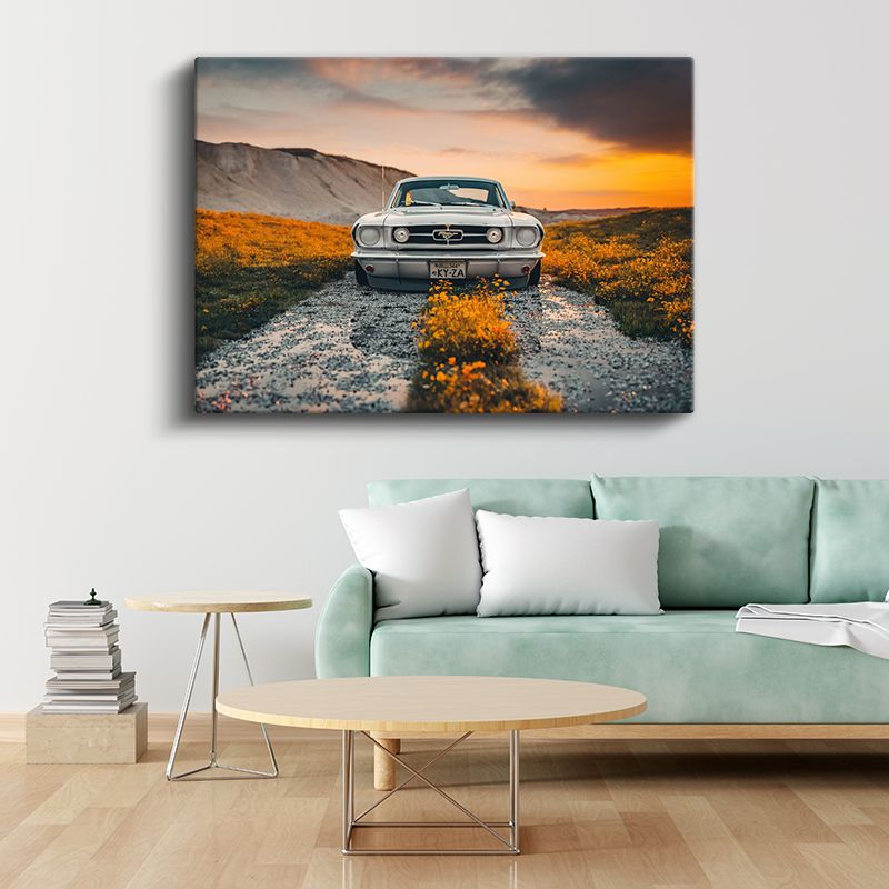 Ford Mustang Klasik - Beyaz Amerikan Muscle Car Kanvas Tablo