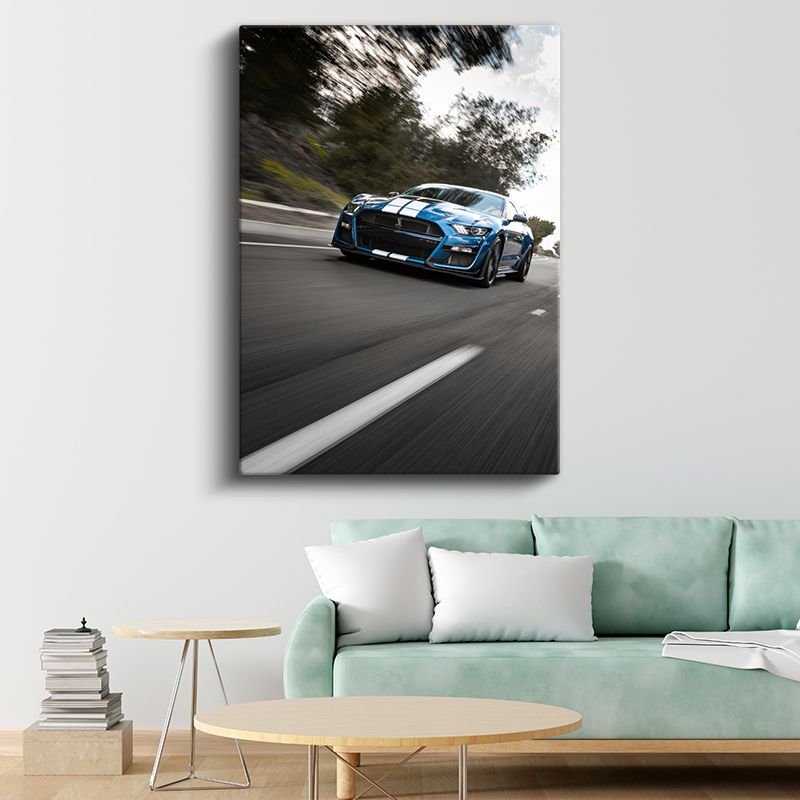 Ford Mustang Shelby GT500 - Mavi Yarış Çizgili Kanvas Tablo