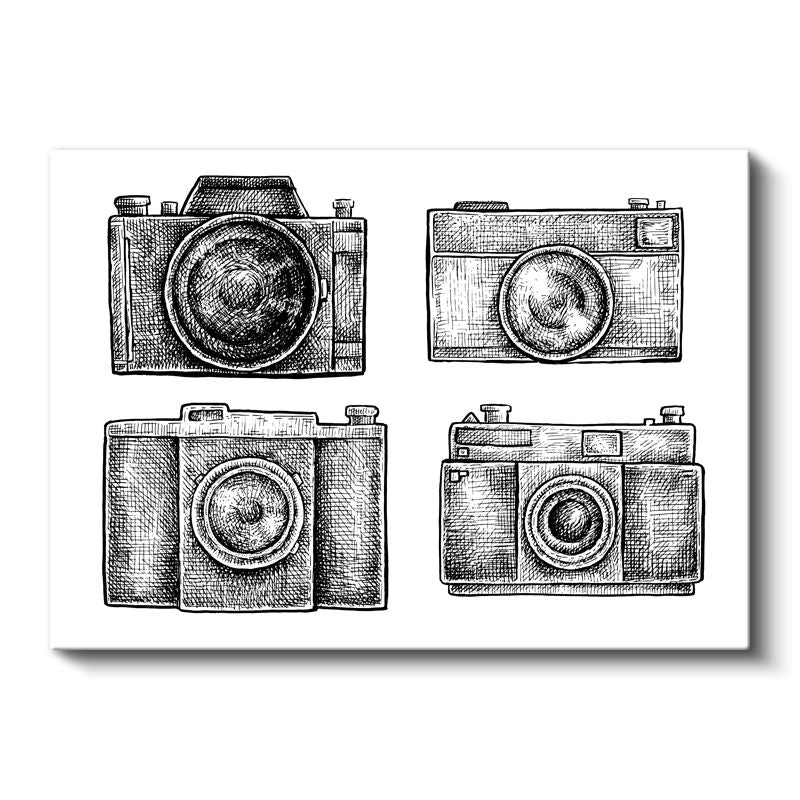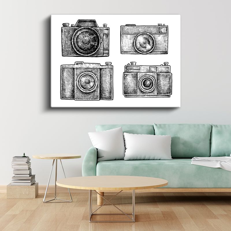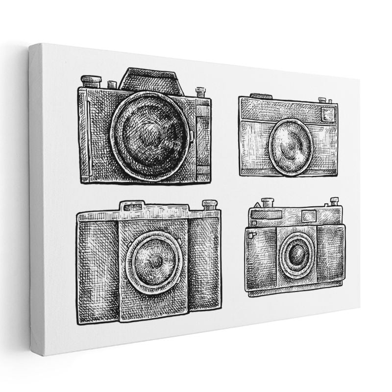 Fotoğraf Makineleri Koleksiyonu - El Çizimi Tasarım Kanvas Tablo