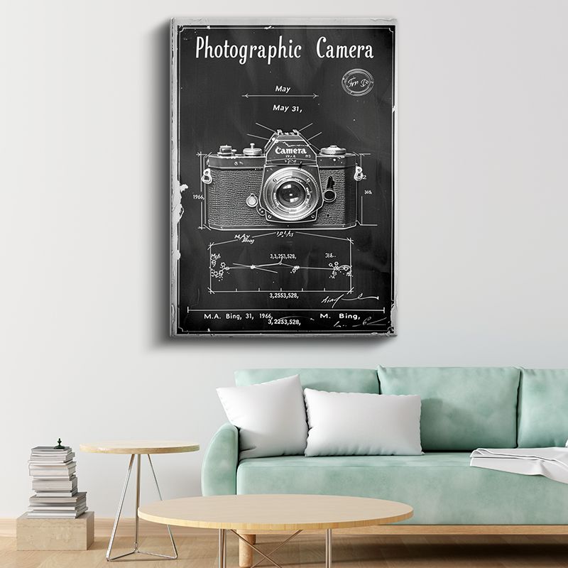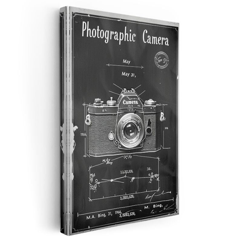 Fotoğraf Makinesi - Klasik Kamera Patent Çizimi Kanvas Tablo