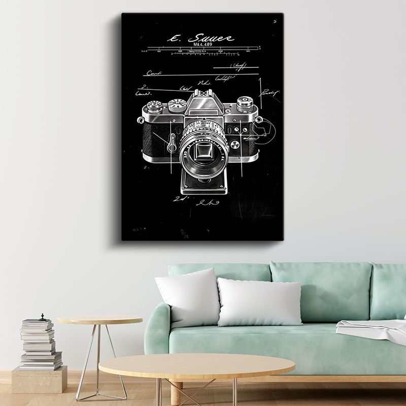 Fotoğraf Makinesi Şeması - Klasik Analog Ekipman Kanvas Tablo