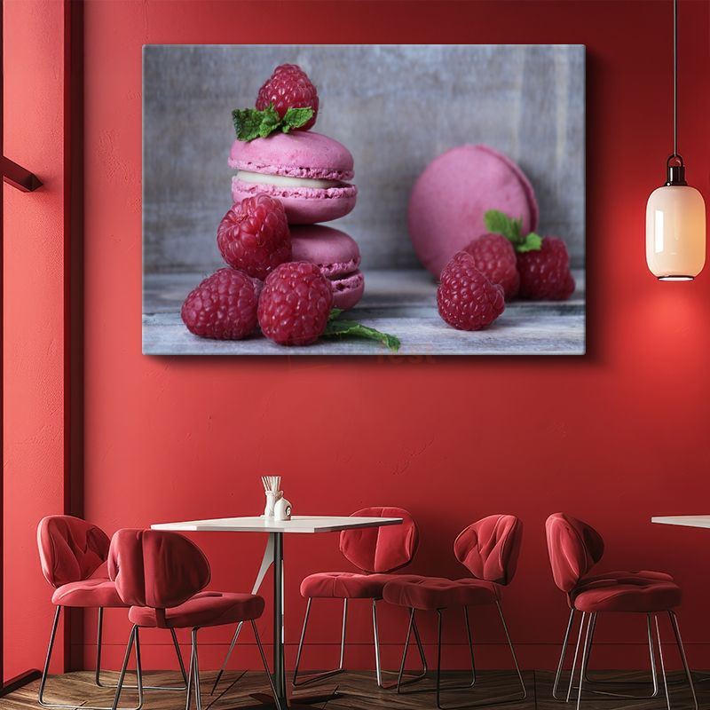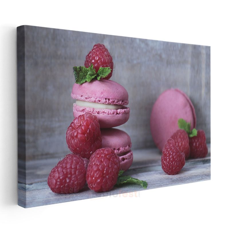 Frambuazlı Makaron - Zarif Fransız Tatlı Sunumu Kanvas Tablo
