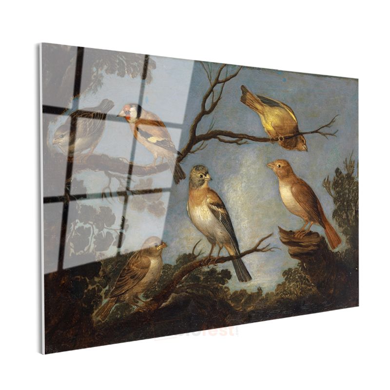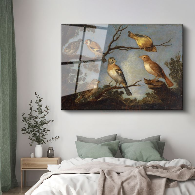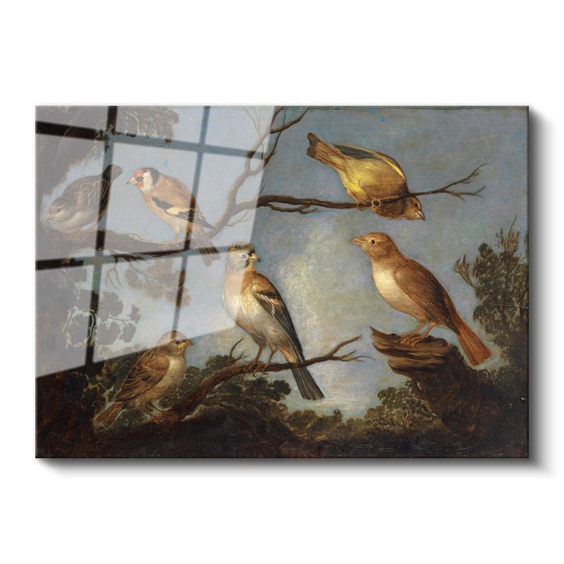 Francis Barlow - Ağaç Dallarındaki Kuşlar Cam Tablo