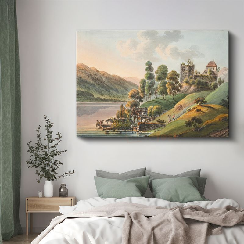 Franz Niklaus König - Göl Kenarında Şato Kanvas Tablo