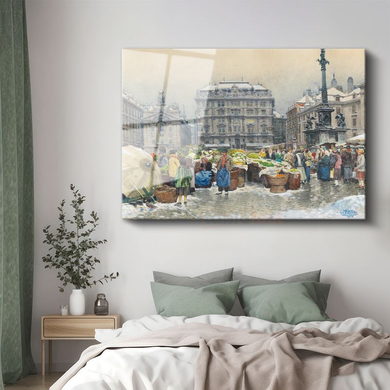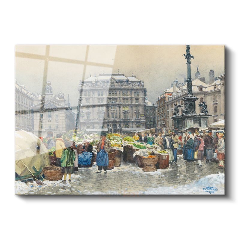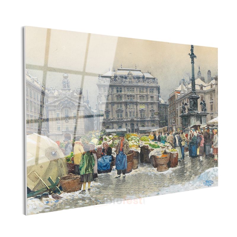 Franz Richard Unterberger - Kış Mevsiminde Pazar Yeri Cam Tablo