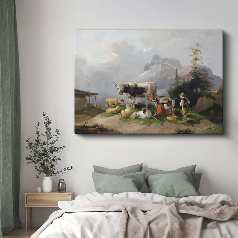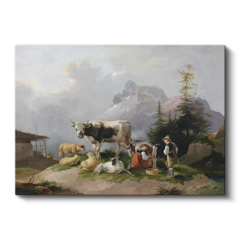 Friedrich Gauermann - Alp Dağlarında Çobanlar ve Sürü Kanvas Tablo
