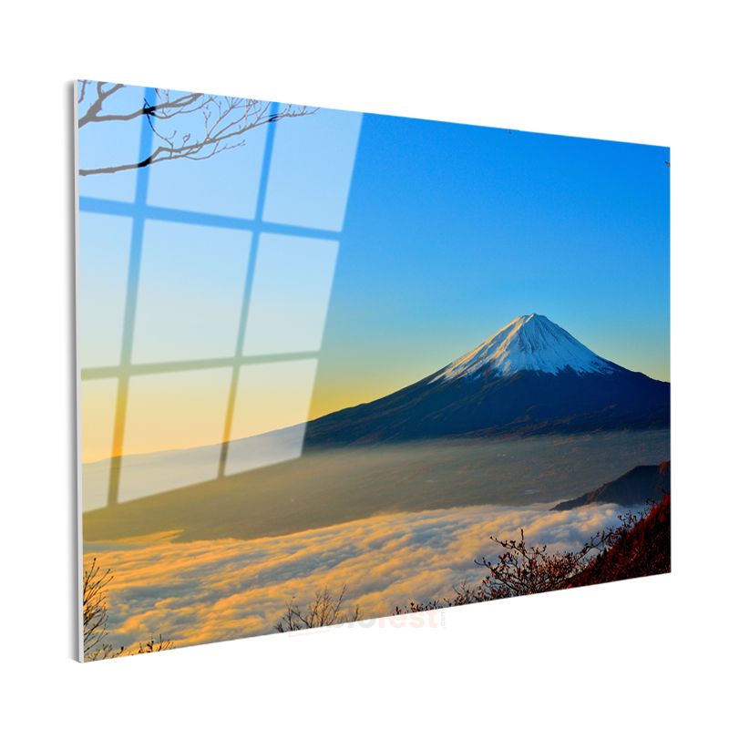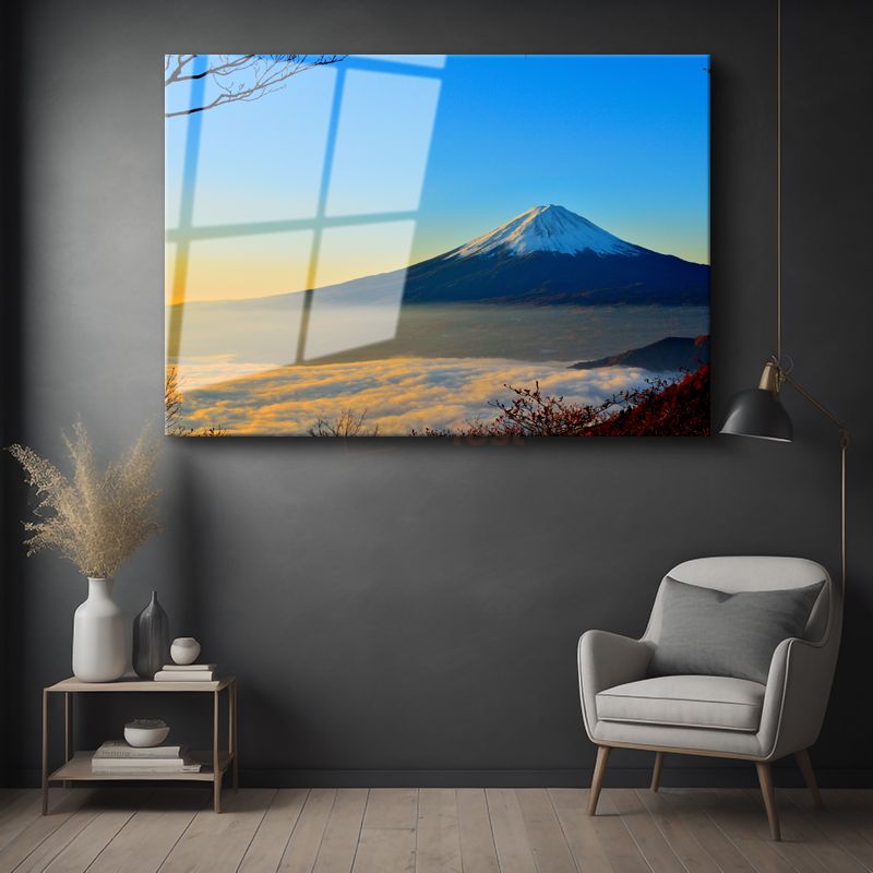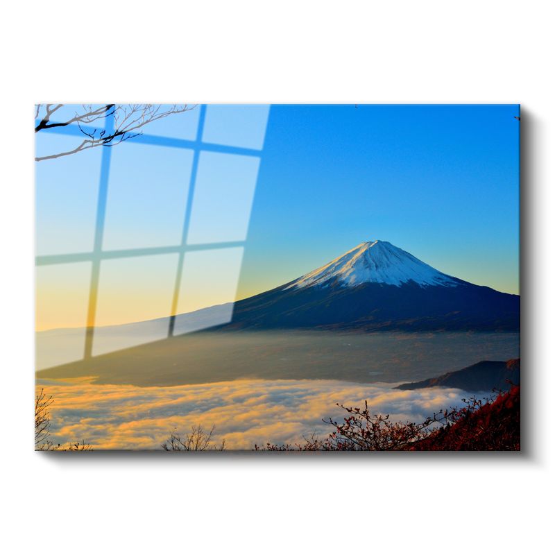 Fuji Dağı - Bulutlar Üzerinde Yükselen İhtişam Cam Tablo