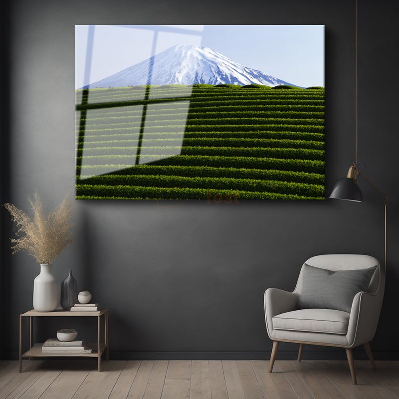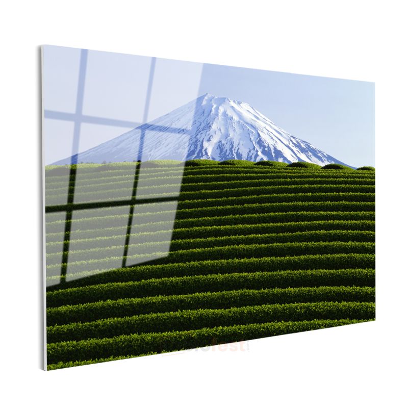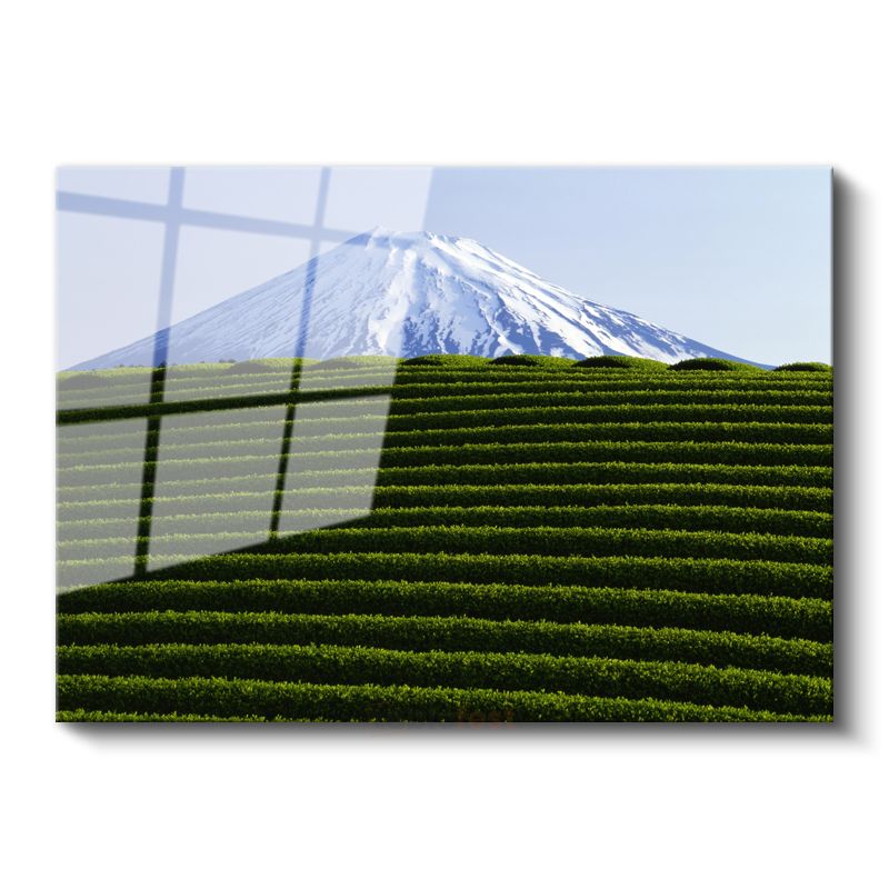 Fuji Dağı - Çay Tarlaları Manzarası Cam Tablo