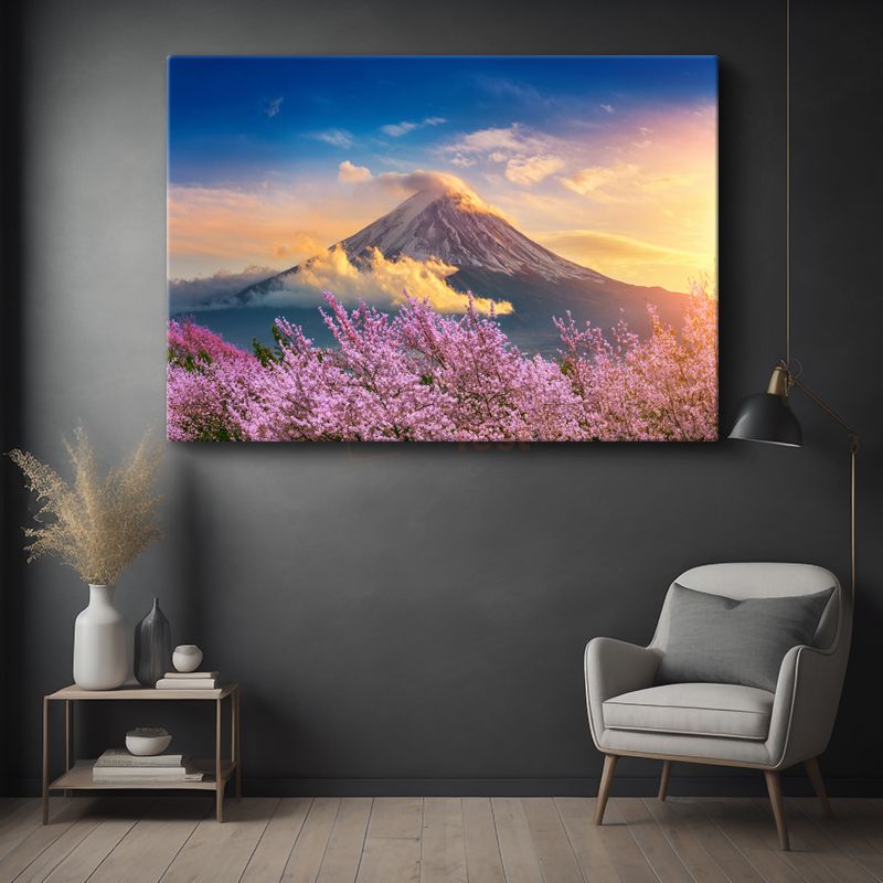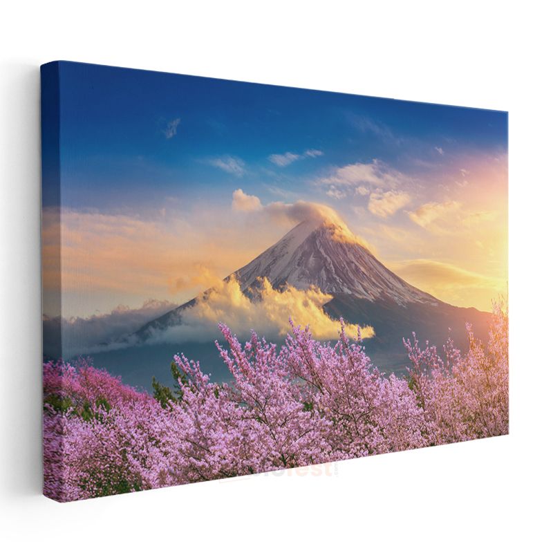 Fuji Dağı - Kiraz Çiçekleri Arasından Muhteşem Görünüm Kanvas Tablo
