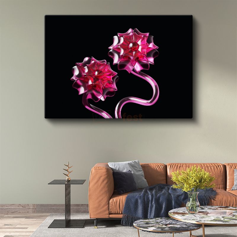 Fuşya Kristaller - Zarif Kıvrımlar Kanvas Tablo