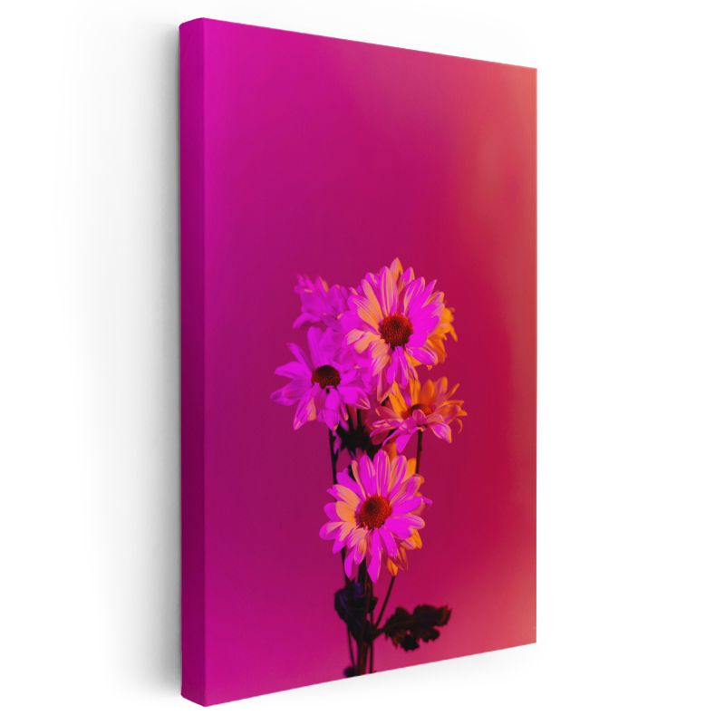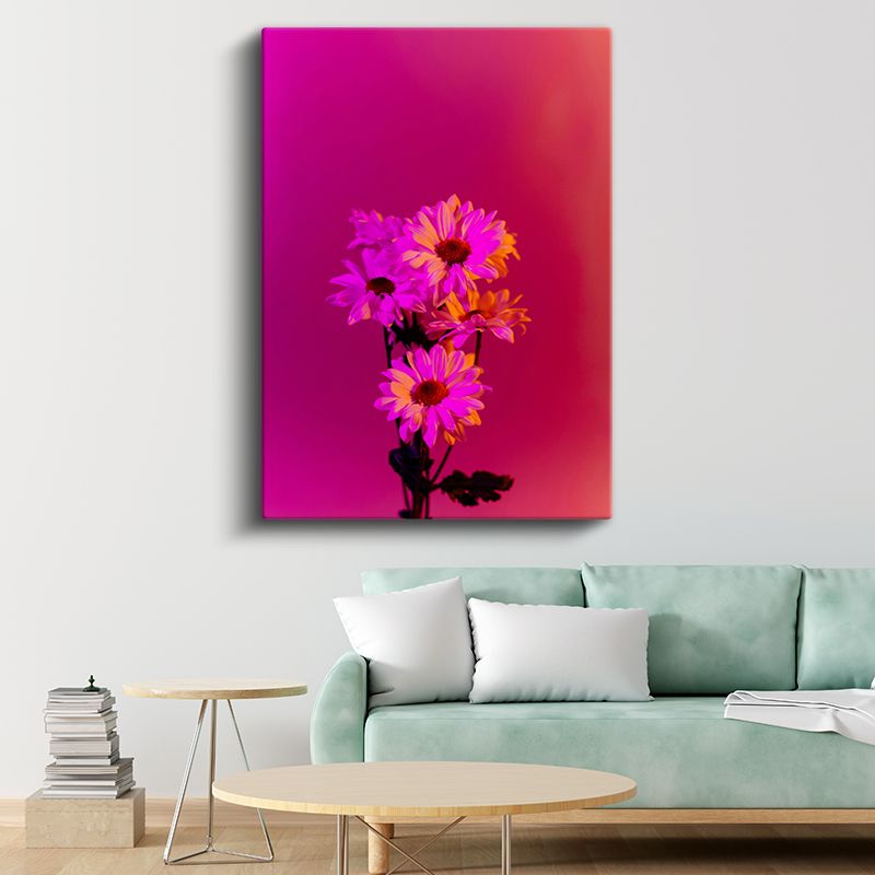 Fuşya Papatyalar - Canlı Neon Çiçek Buketi Kanvas Tablo