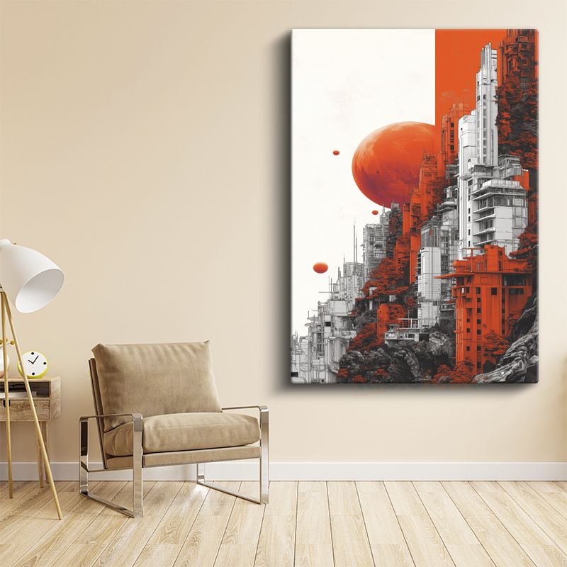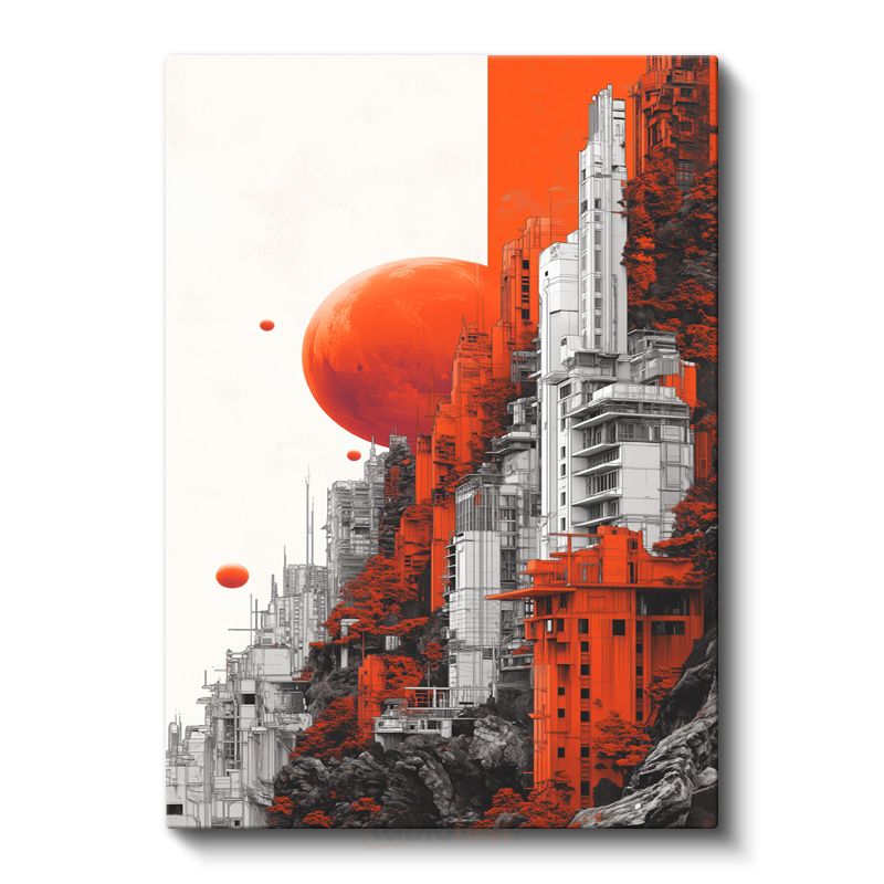 Fütüristik Şehir - Turuncu Vizyon Kanvas Tablo